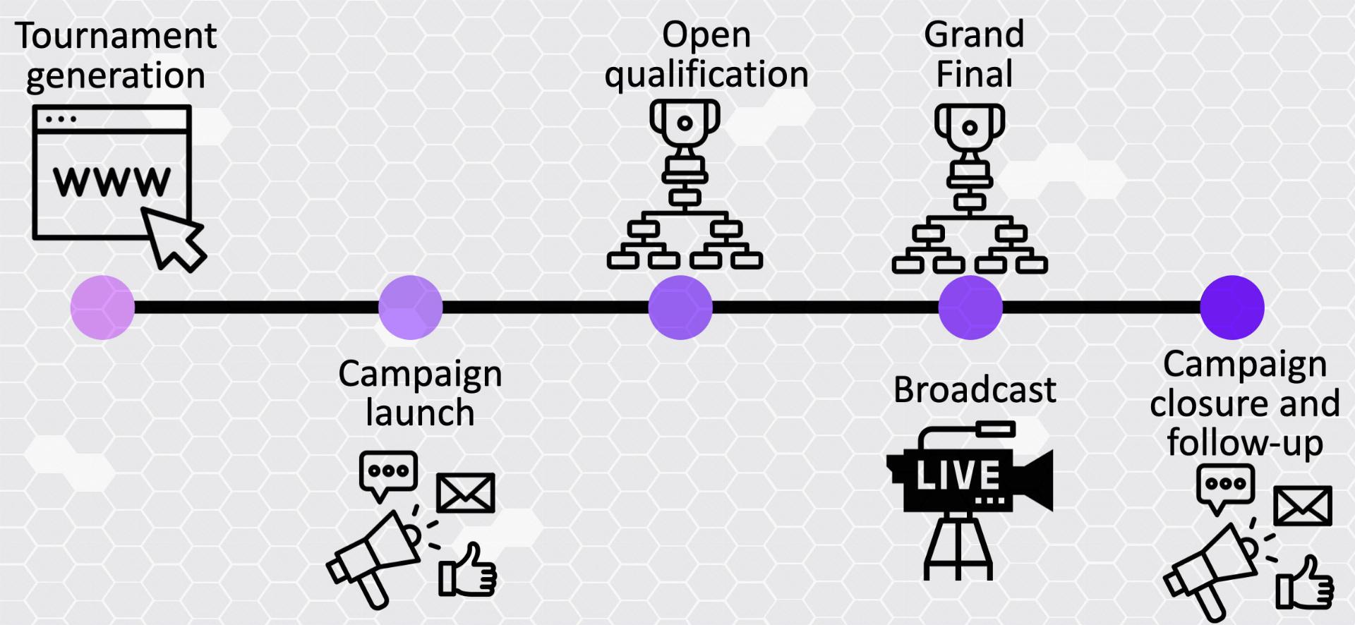 • Integrate the online and offline phases of tournaments and competitions, offering a complete experience that ranges from virtual gaming to live meetings.